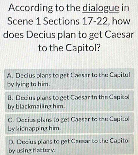 Decius understands that Caesar's pride and longing for power can overshadow his rational thinking. He uses this knowledge to his advantage, crafting a narrative that portrays the assassination as an event that will immortalize Caesar and solidify his place in history. Decius believes that by appealing to Caesar's sense of legacy and heroism, he can persuade him to attend the Senate and ultimately meet his tragic fate.